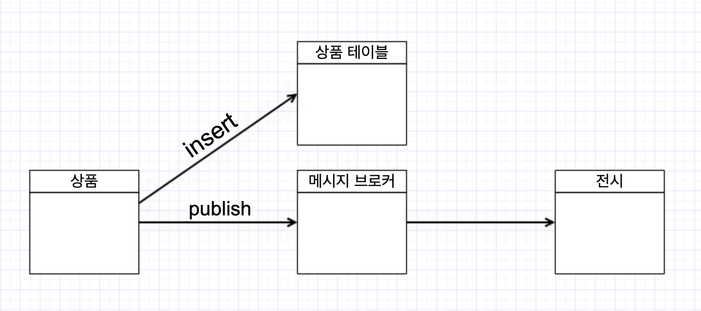 상품 서버와 전시 서버가 분리된 환경에서 새로운 상품을 등록하는 상황을 예로 들어보겠습니다.