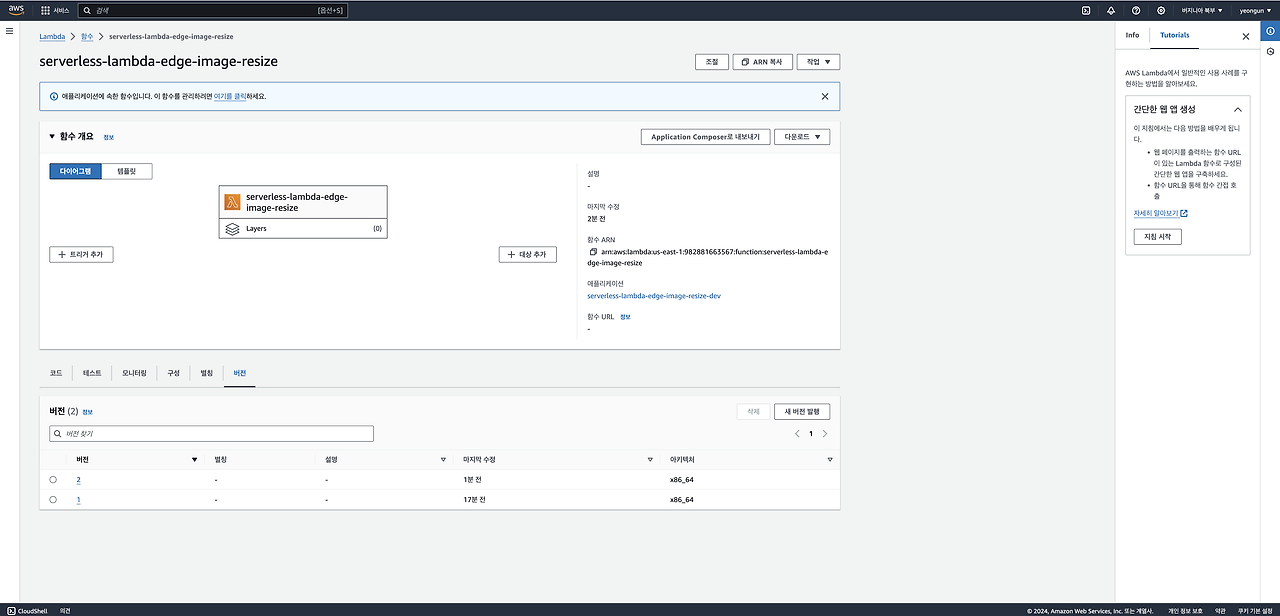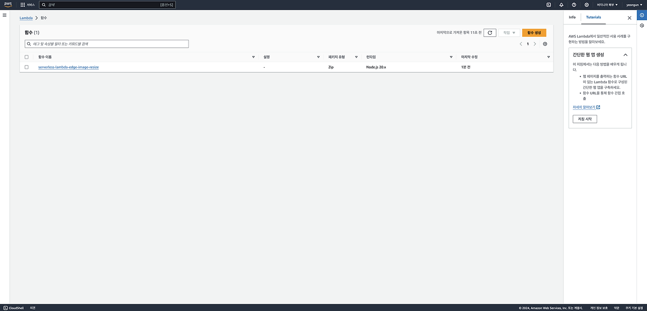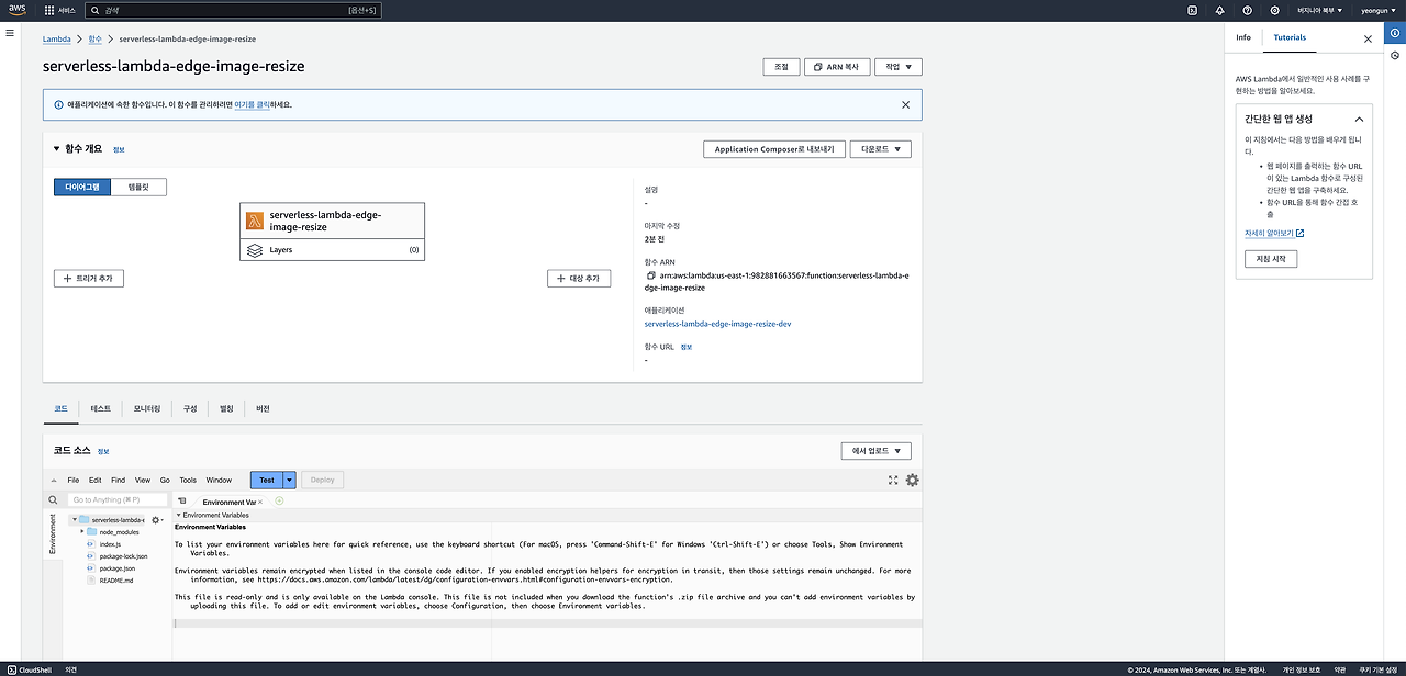 간단한 람다 테스트가 끝났습니다. 이제 이미지 리사이징 람다를 배포해봅시다.