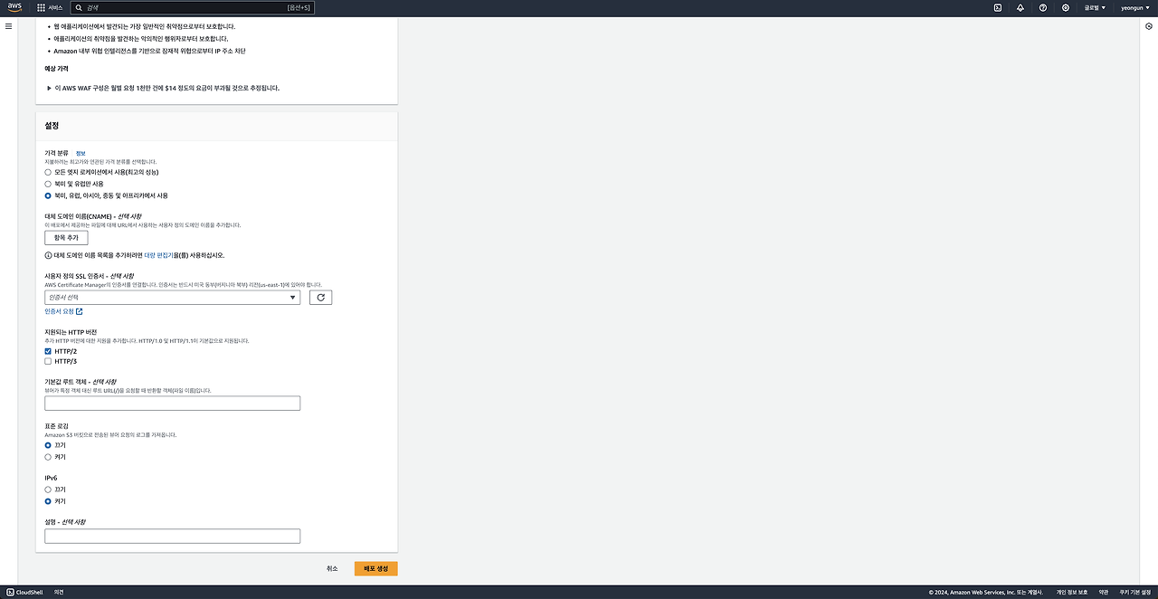 2. CloudFront 생성 및 캐시 정책 수정